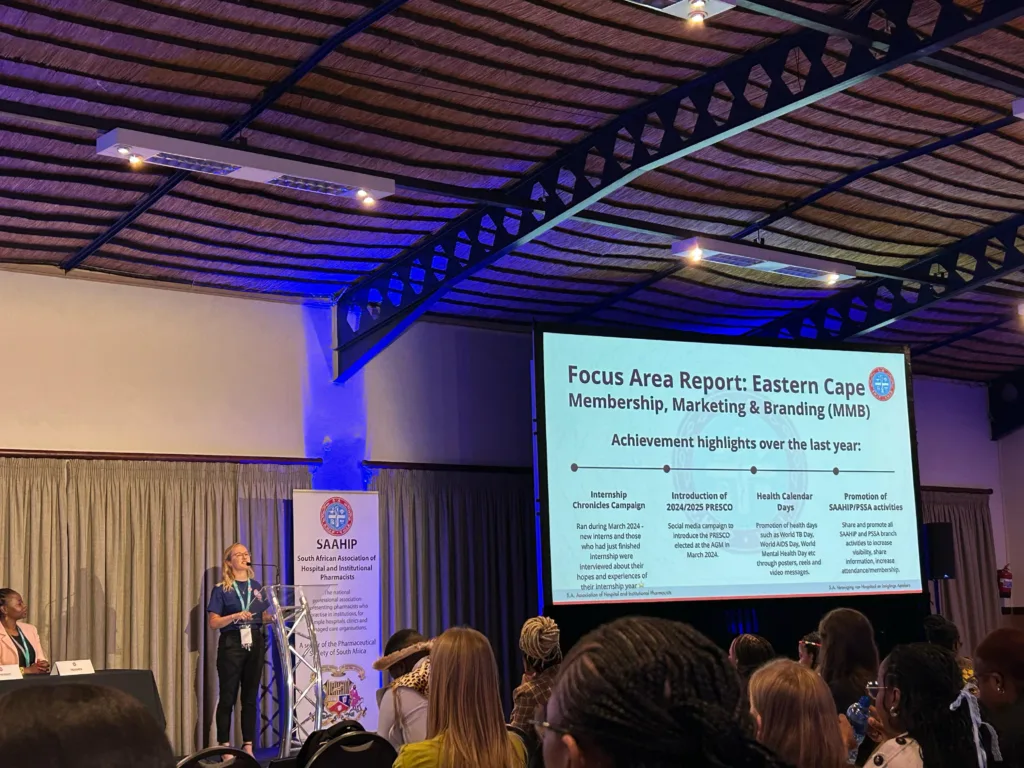Beyond her hospital duties, Robyn Wates has emerged as a national leader among South Africa’s hospital pharmacists. She was elected as the Chairperson of the Eastern Cape branch of the South African Association of Hospital and Institutional Pharmacists (SAAHIP), representing hospital pharmacists across the province. In this role, she not only coordinates activities for Eastern Cape members but also sits on SAAHIP’s National Executive Committee, contributing to strategy and advocacy at the highest level. Her energy and insight have stood her in good stead to be the chair of SAAHIP’s Membership, Marketing and Branding (MMB) Focus Area – a portfolio that drives member engagement and public visibility for the organization.